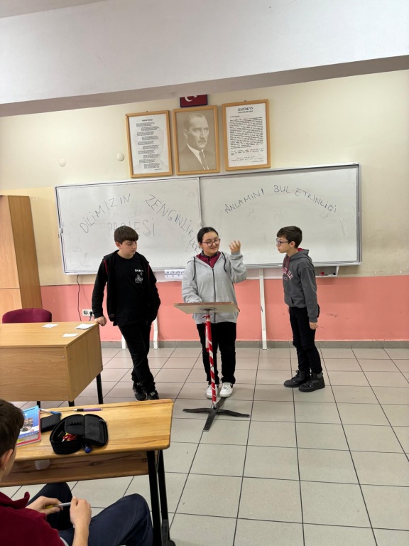Tüm sınıflarda "Anlamını Bul" etkinliği yapıldı. Kelime kartları hazırlanıp belirlenen gruplar tarafından kartlar çekildi ve kelimeler anlatıldı. Kazanan grup ödüllendirildi.